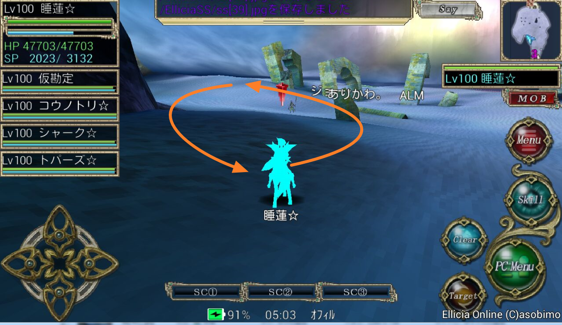 壁は釣り終わりの位置からそれなりに手前で集めたモブを一度纏めます。スタン等敵の攻撃によって無理やり止まるのもありです(ぇ